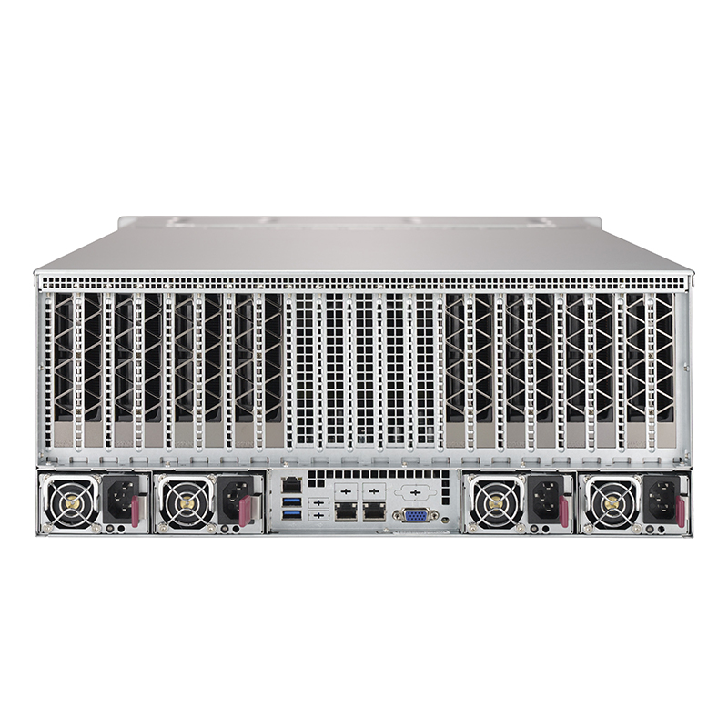 支持1/2顆英特爾® 至強® 可擴展系列處理器/C622芯片組/24* DDR4內存插槽/24* 2.5英寸熱插拔盤位(可選 4* U.2 NVMe SSD)/1* 內置 M.2 PCI-E SSD盤位/2* 萬兆網絡電口/1* 千兆網絡遠程管理接口/1* VGA接口/11* PCI-E 3.0 x16雙寬插槽(最大10 GPUs)/1* PCI-E 3.0插槽/1* COM接口(選配)/2000W 2+2 冗余電源
