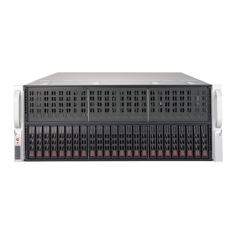支持 24* 熱插拔 2.5英寸 SATA/SAS 硬盤(可選 4* U.2 NVMe SSD)