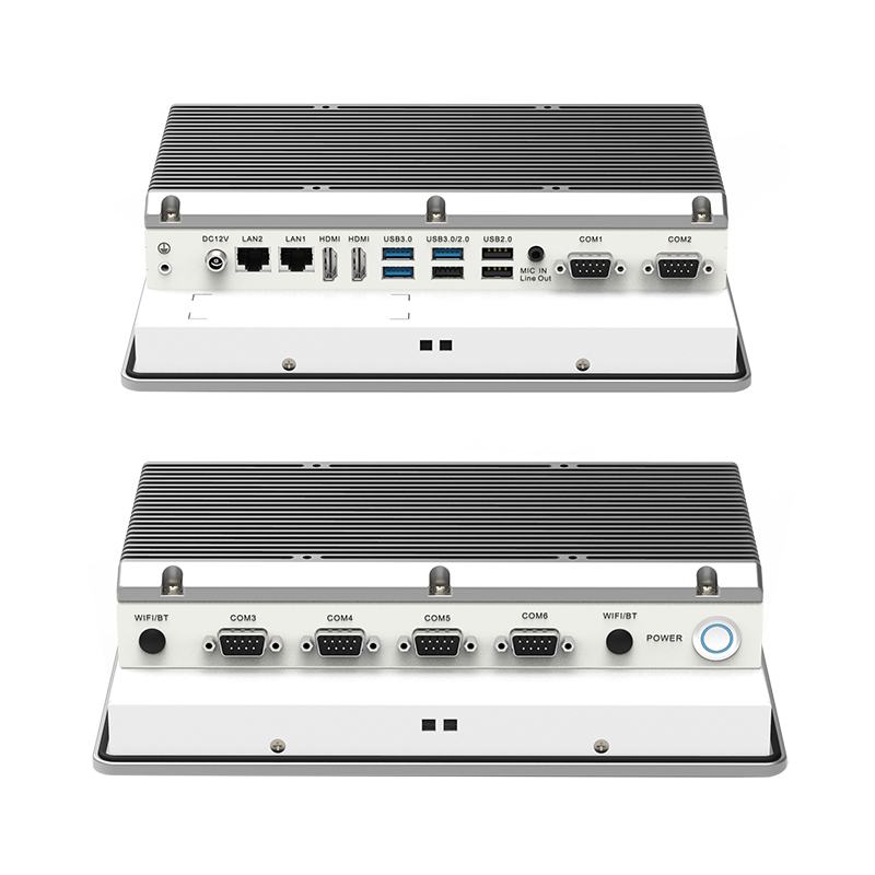 低功耗:英特爾® 賽揚® J6412 板載處理器,TDP 10W外觀設計:鋁合金一體成型,工藝精細,科技時尚穩定可靠:純工業無風扇設計,大面積鋁鰭散熱,箱體材質可抗接觸式6Kv強電磁干擾;液晶屏接觸處加強型密封膠圈設計,面板防水防撞擊人機界面友好:純屏10點工規電容觸控,操作更便利接口豐富:2*LAN(Intel),6*COM,3*USB3.0,3*USB2.0,2*HDMI,1*M.2(KEY-M,2280,支持PCIE x2信號 NVME SDD),1*Mini PCIE(全高,PCIE+USB信號,支持WIFI/BT)
